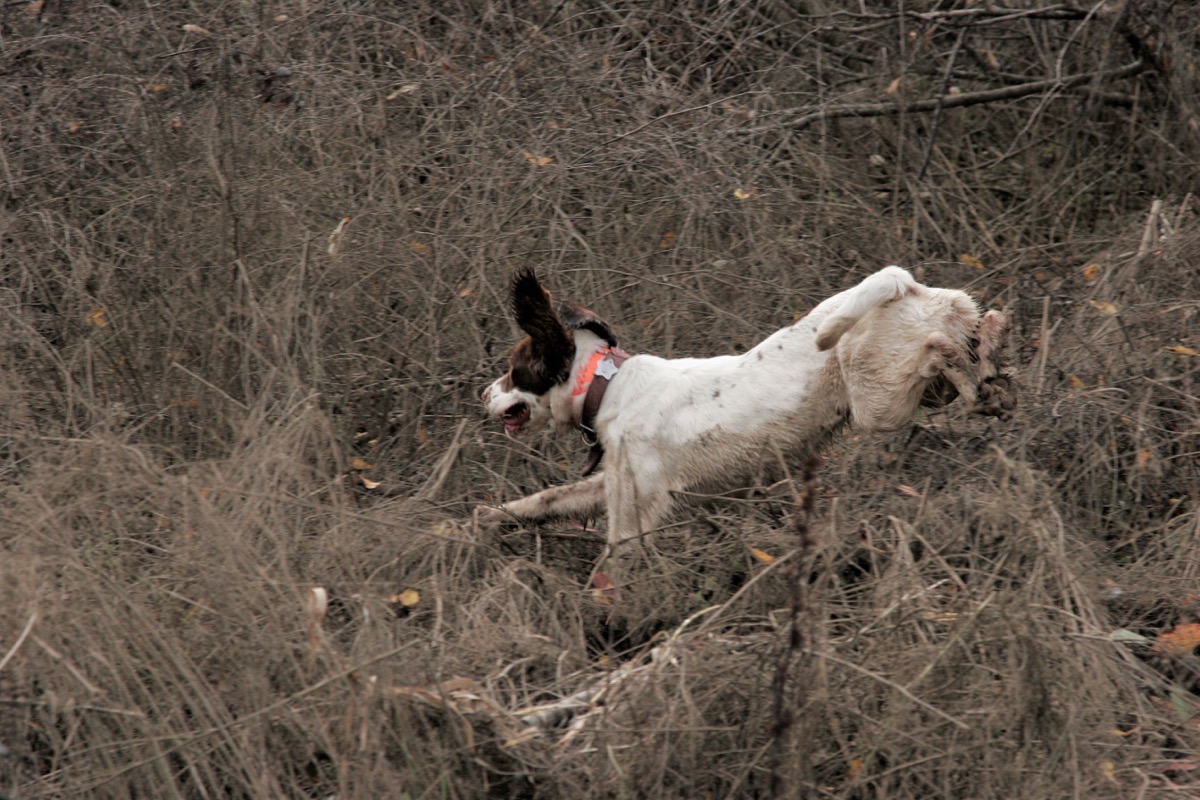 The flushing dogs available to us are Springers and have achieved success in AKC hunt tests, or are very experienced field dogs. They remain within range, flush birds and retrieve quickly and efficiently and happily return to hunting. That is all we can ask.